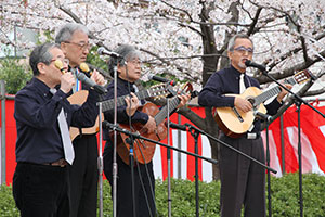 平成26年4月6日(日) 前日の雨予報で心配された天候も観音さまの慈悲のおかげで春らしい陽気の中、ラテンミュージックバンド「ロス・コンパニュエロス」の澤西さんの軽快な司会進行で瑞応寺の花祭りの会が開催されました。 瑞応寺 2014花まつりの風景